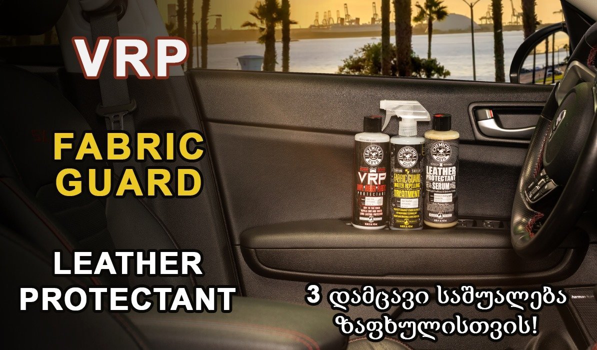 FABRIC GUARD INTERIOR PROTECTOR – დამცავი საფარი ნებისმიერი სახის ქსოვილის ზედაპირისთვის. იცავს სითხისგან, მტვრისგან, ლაქებისგან და რაც მთავარია ულტრაიისფერი სხივებისგან.